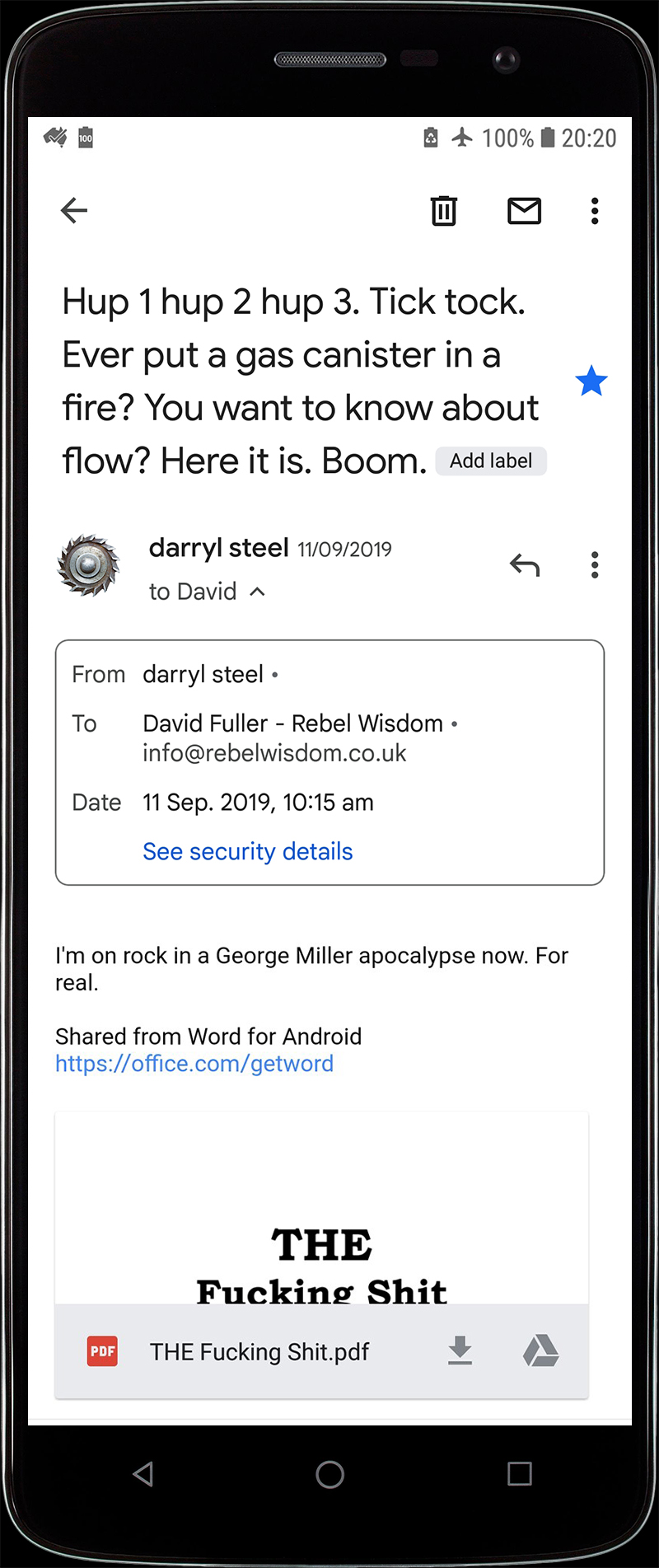 The shit-paper draft was a rush job to make a September 11 drop. It followed an initial A4 format draft emailed to David at Rebel Wisdom: